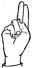 На ћирилици написано ШАЛЕ ПУЧИЋ састоји се из 9 слова [?]. Исписано ћириличном једноручном азбуком за глувонеме: